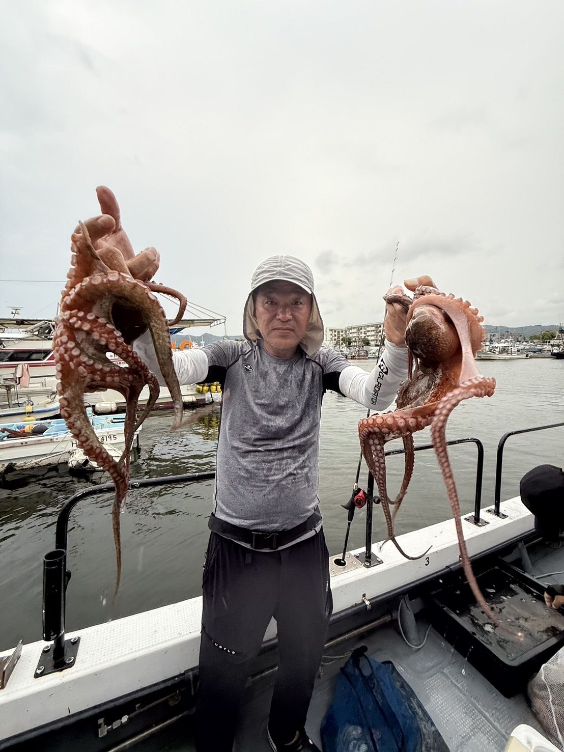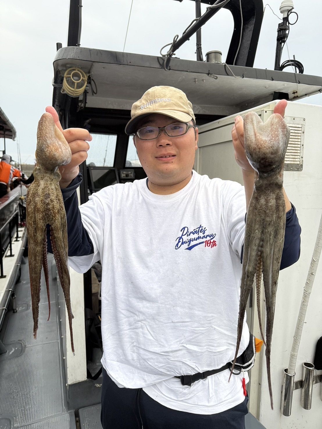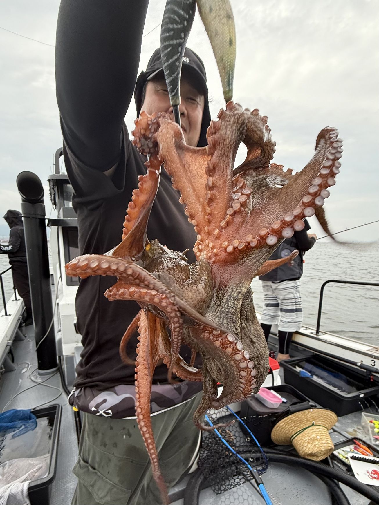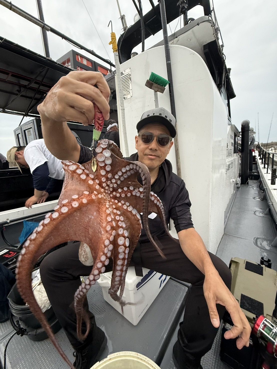 午前からのダブルヘッダーの変態タコ釣り師さん達も乗船し、気合いを入れ出船🐙🔥🔥